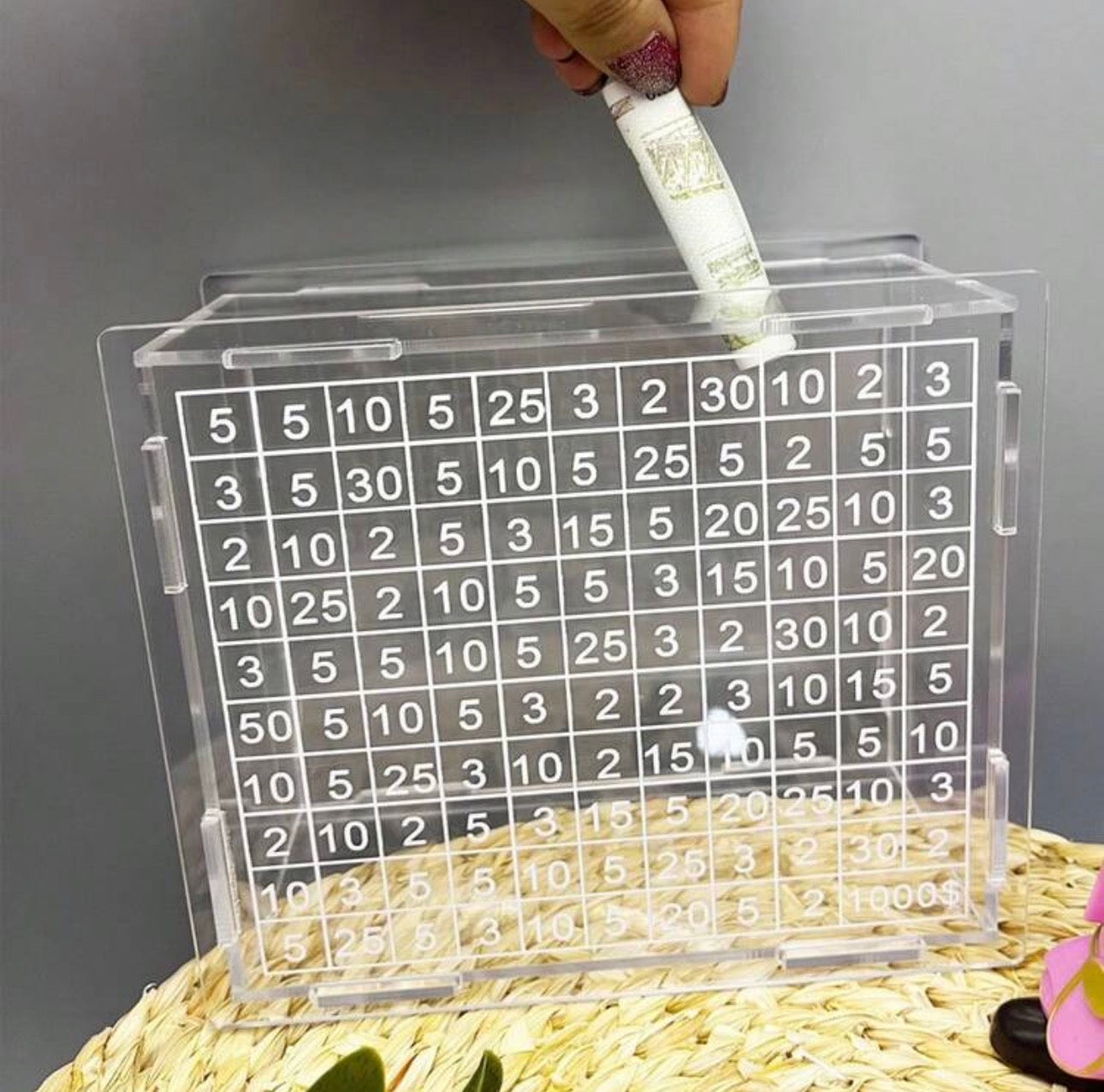 Maximize your savings with the Acrylic Money Box Savings Challenge. Crafted from durable acrylic, this money box is perfect for organizing and saving your spare change. With its sleek design and compact size, it's a practical and stylish addition to any home. Start the money-saving challenge today and see your savings grow!