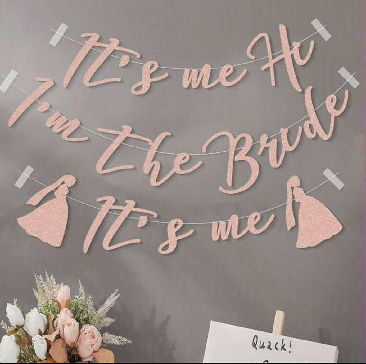 Highlight your special status as the bride-to-be with our "It's Me Hi I'm The Bride" banner. Made with quality materials, this banner is a fun and unique addition to your bridal shower or bachelorette party. Celebrate with style and let everyone know who the star of the show is.