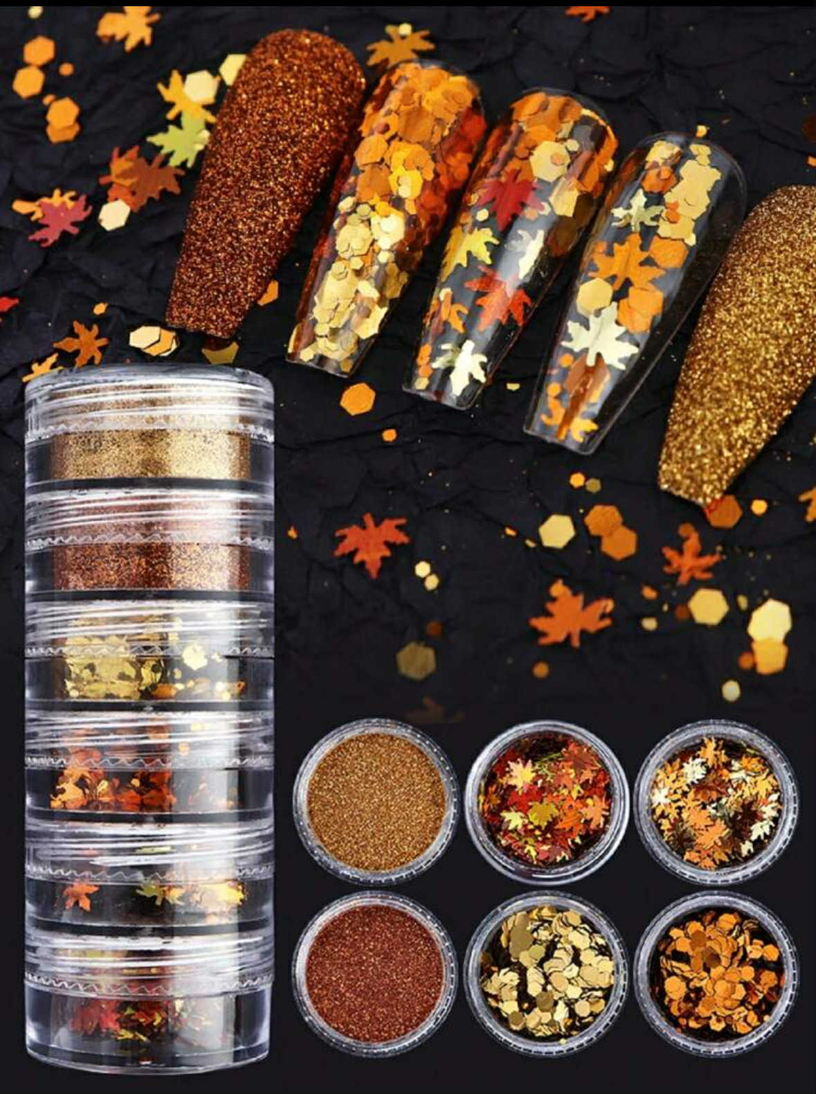 Capture the beauty of autumn on your fingertips with our exquisite Fall Nail Art Glitter & Sequin Collection. This set features a dazzling array of rich autumnal glitters, from warm golds and coppers to deep rusty browns, alongside charming maple leaf and hexagonal sequin shapes in classic fall hues. Ideal for professional nail artists and DIY enthusiasts alike, these high-quality decorations will help you create breathtaking, long-lasting seasonal nail designs.